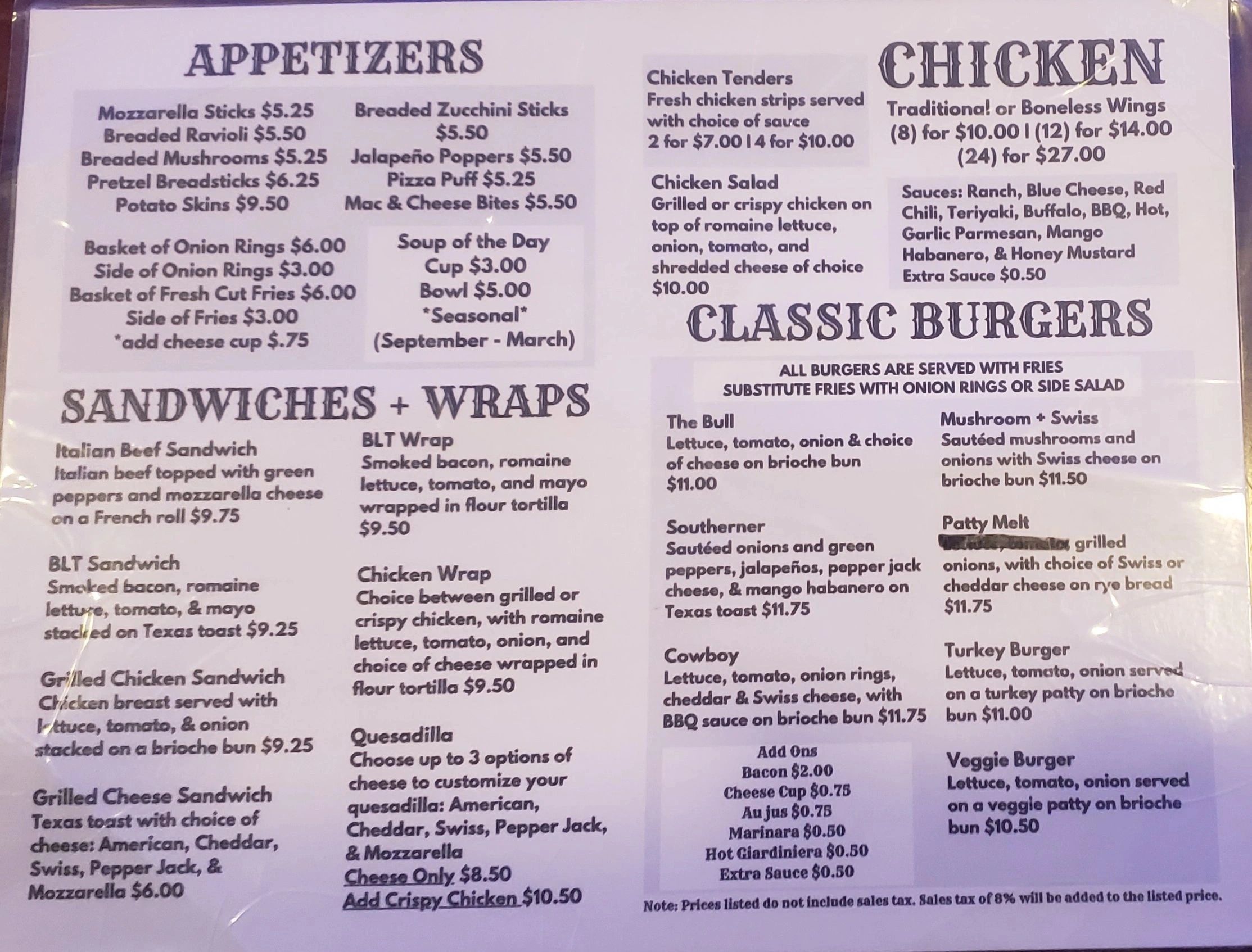 Sit N Bull Saloon in Historic Beecher was originally built in 1870... 614 Gould Street was formerly known as Up the Street and Somewhere in Time before being damaged in a catastrophic fire. After being closed for 7 years, Beecher natives, The Salmen family took over the damaged property and finally with many months of hard-work, the country-western themed renovations have brought life to the newly named bar, the Sit-N-Bull Saloon. Preserving the history of downtown Beecher, the new owners decided to reuse many of the reclaimed wood that was used in the construction of the building, such as converting old floor boards into a new bar top and tables as well as using rustic tin from an old barn (located in the countryside west of Beecher's village limits) used for finishing up the side of the bar. Offering indoor and outdoor seating, fresh food, and many craft beers, the Sit-N-Bull Saloon provides a great atmosphere to relax, grab a meal, and a drink with friends and family. We feature live music a few times each month, offer video poker, and can accommodate indoor and outdoor private parties for up to 150 people. Stop in and enjoy our daily specials!